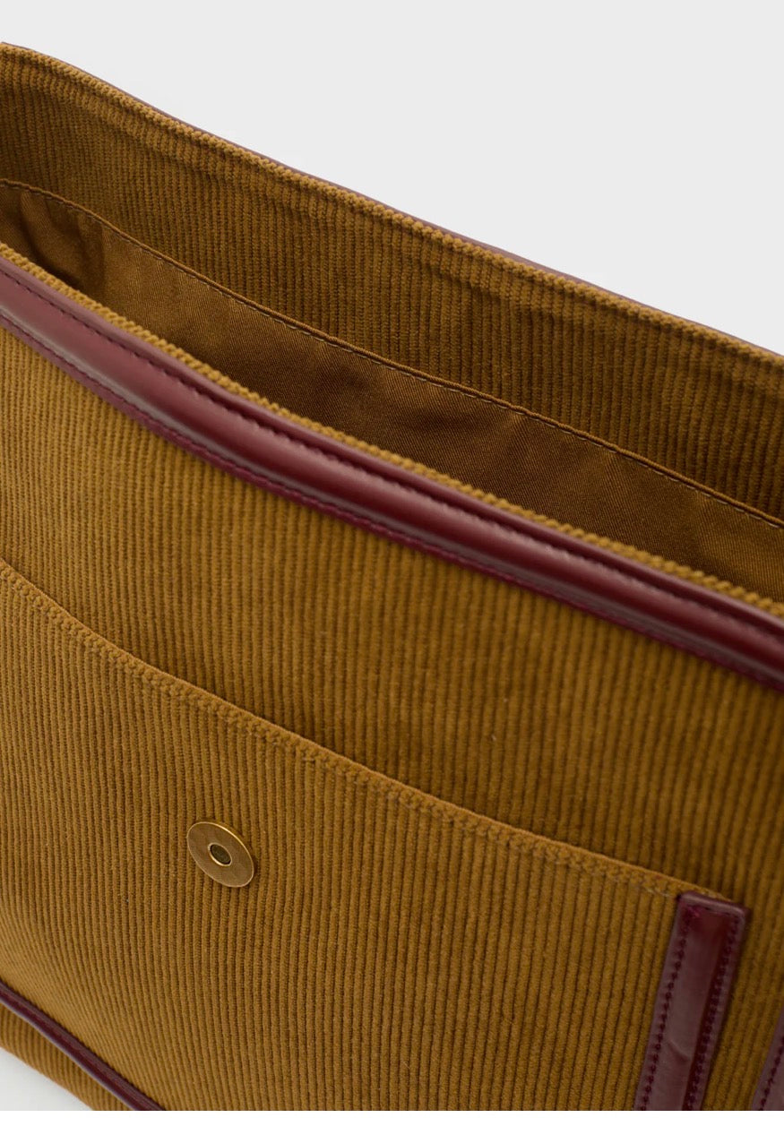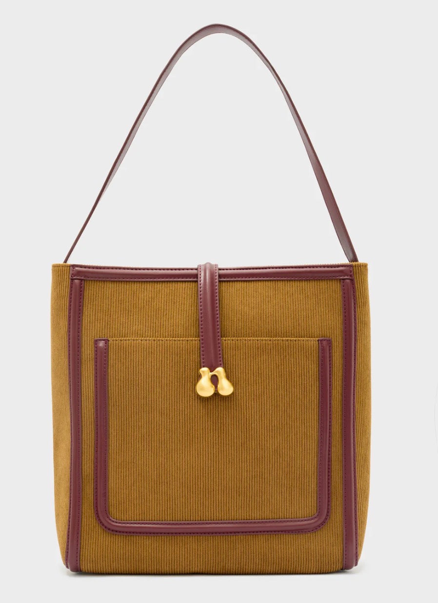 Borsa a spalla strutturata in tessuto a coste, con ampio scomparto e chiusura con accessorio metallico, ideale per un'eleganza quotidiana senza tempo.