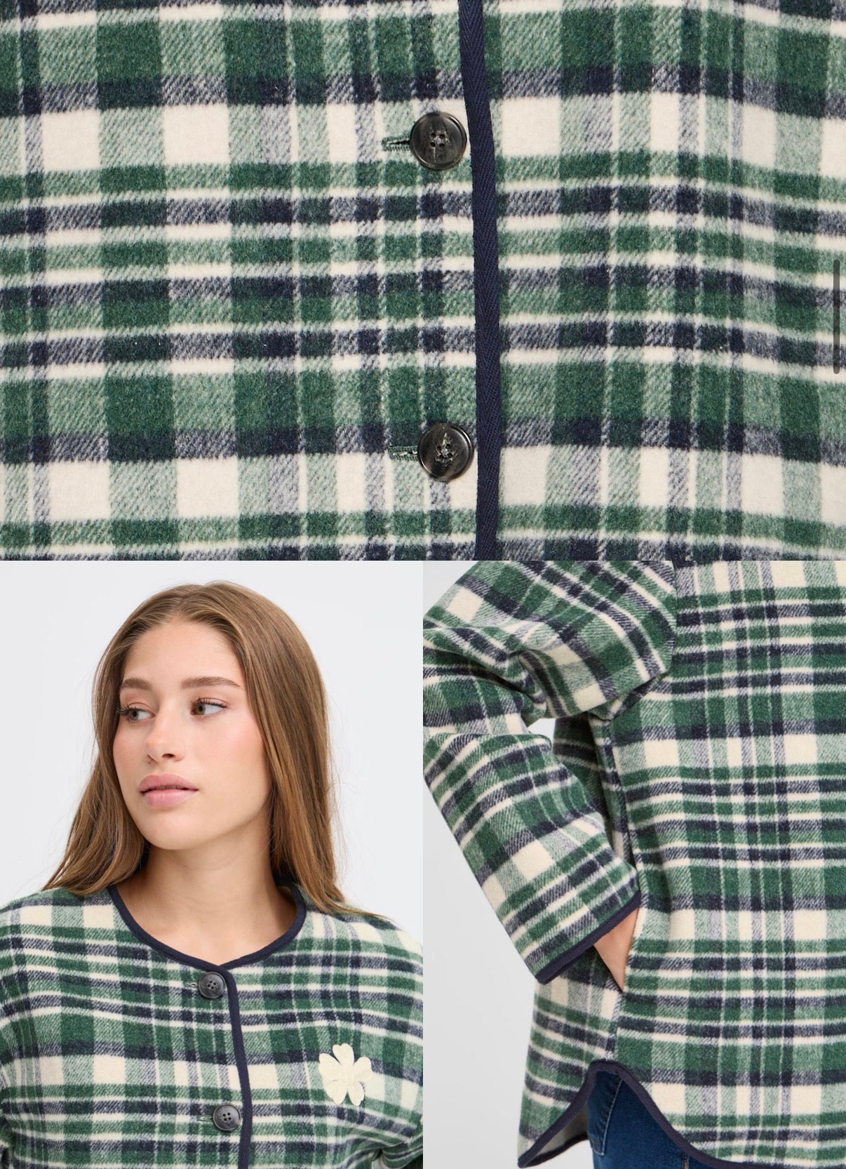 Questa giacca a quadri da donna offre una vestibilità rilassata con scollo rotondo e bottoni sul davanti, con maniche lunghe e una silhouette dritta contemporanea per una stratificazione versatile. Progettato per il comfort e lo stile quotidiano.