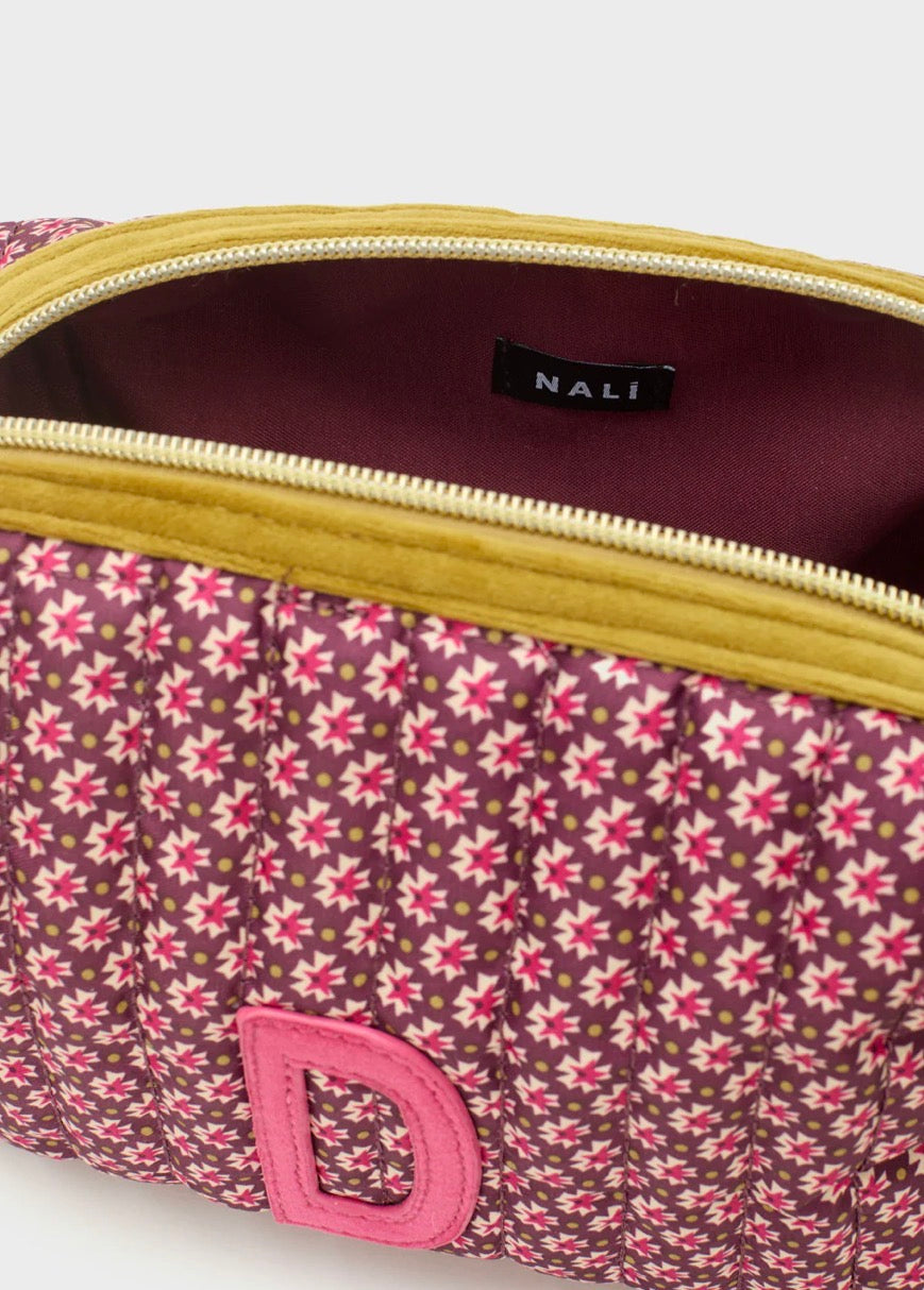 Beauty case compatto con lavorazione trapuntata e decoro applicato sul fronte. Pratico e capiente, è perfetto per organizzare cosmetici e piccoli accessori sia in viaggio che a casa.