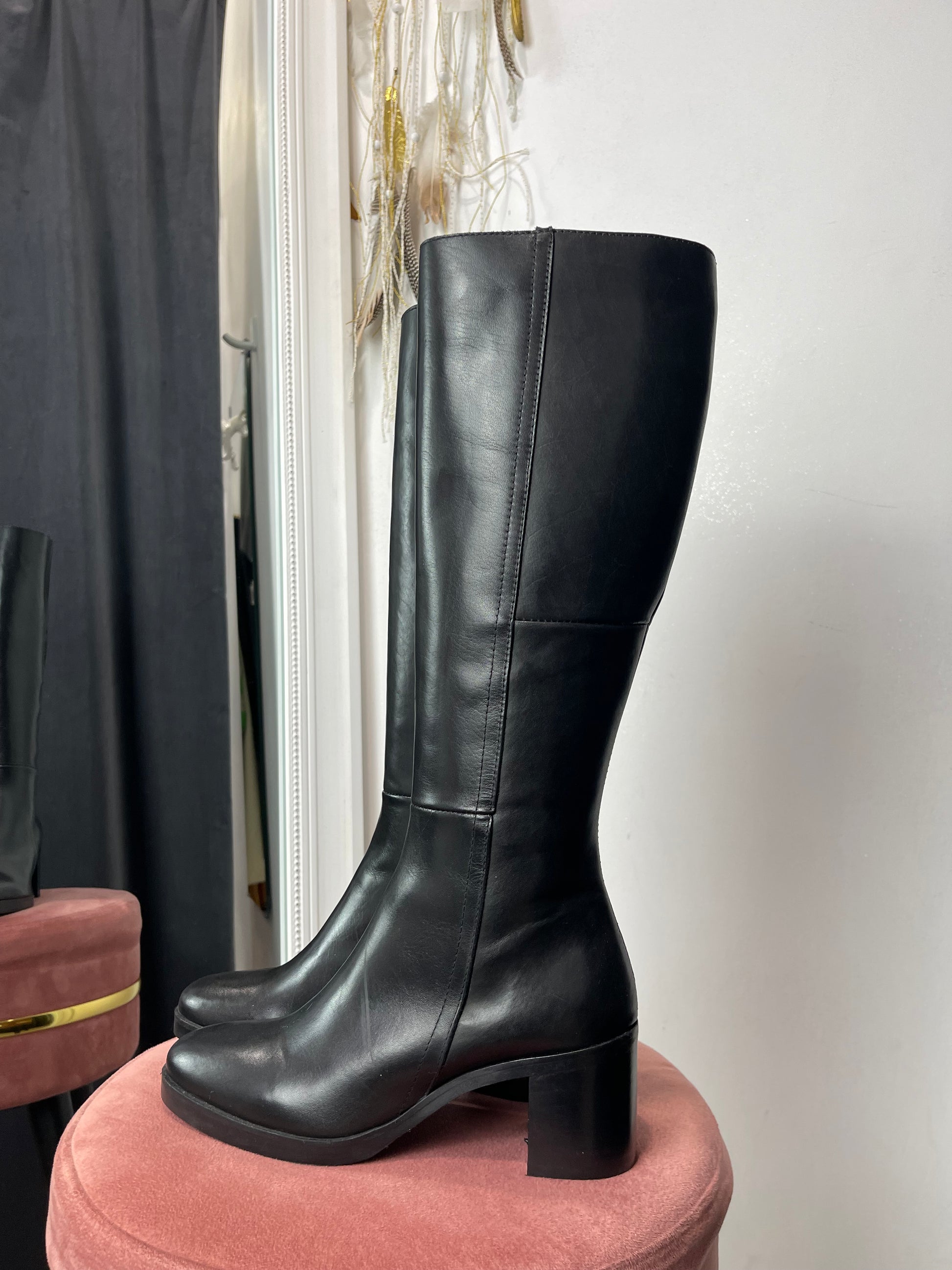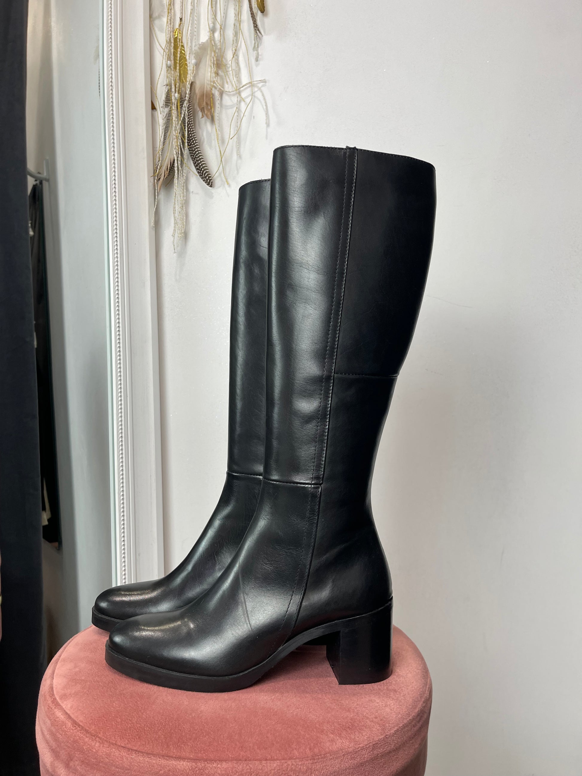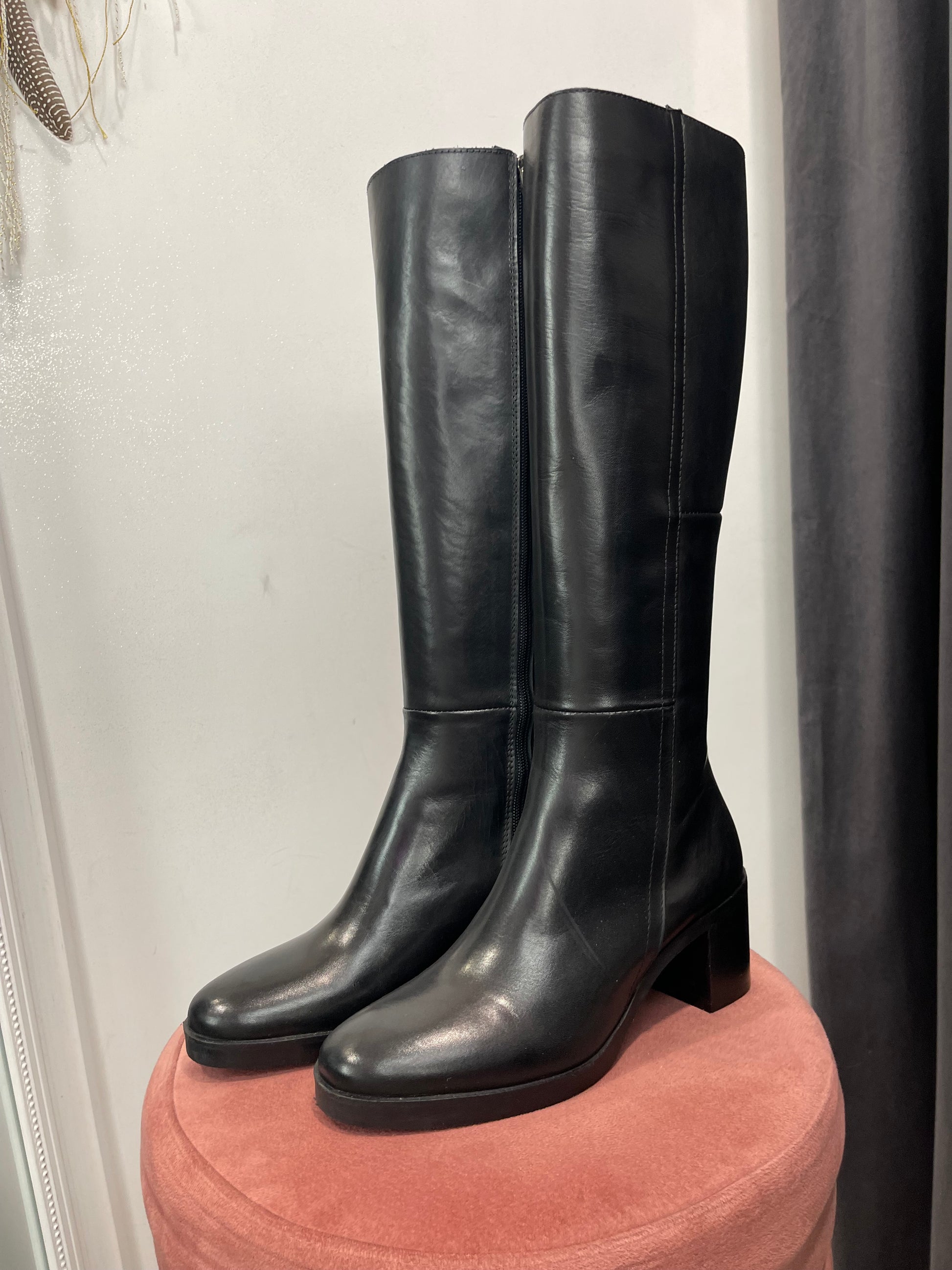Stivale nero in vere pelle con tacco di cm 5. Chiusura con zip all'interno della gamba.